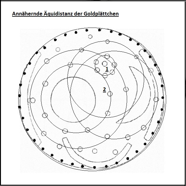 Sowohl die Goldpunkte als auch die Randlöcher haben wechselnde Bedeutungen. Je nach thematischem, kontexturellem Zusammenhang können sie als Symbole für Tage, Jahre, Sonnenstände, Vollmond oder einfach als „Zähler“ angesehen werden.